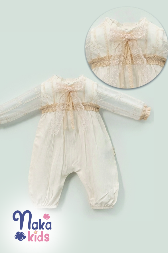 Müslin Tulum: Doğal, nefes alabilen kumaşı ve önündeki dantel fiyonk detayıyla dikkat çeker.