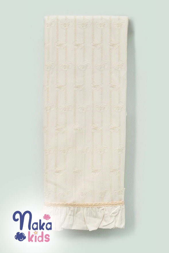 Battaniye: Tüm battaniyeyi kaplayan şık dantel işlemeleri ile yumuşacık bir sarış.