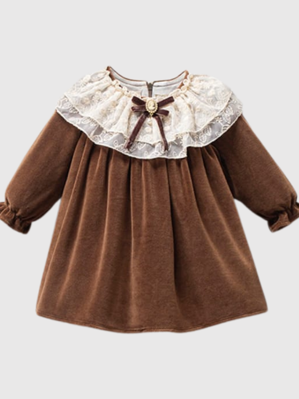 Şık dantel yaka ve ön kısımda zarif broş detayı