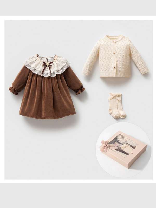 3 parçadan oluşan özel tasarım kız bebek seti