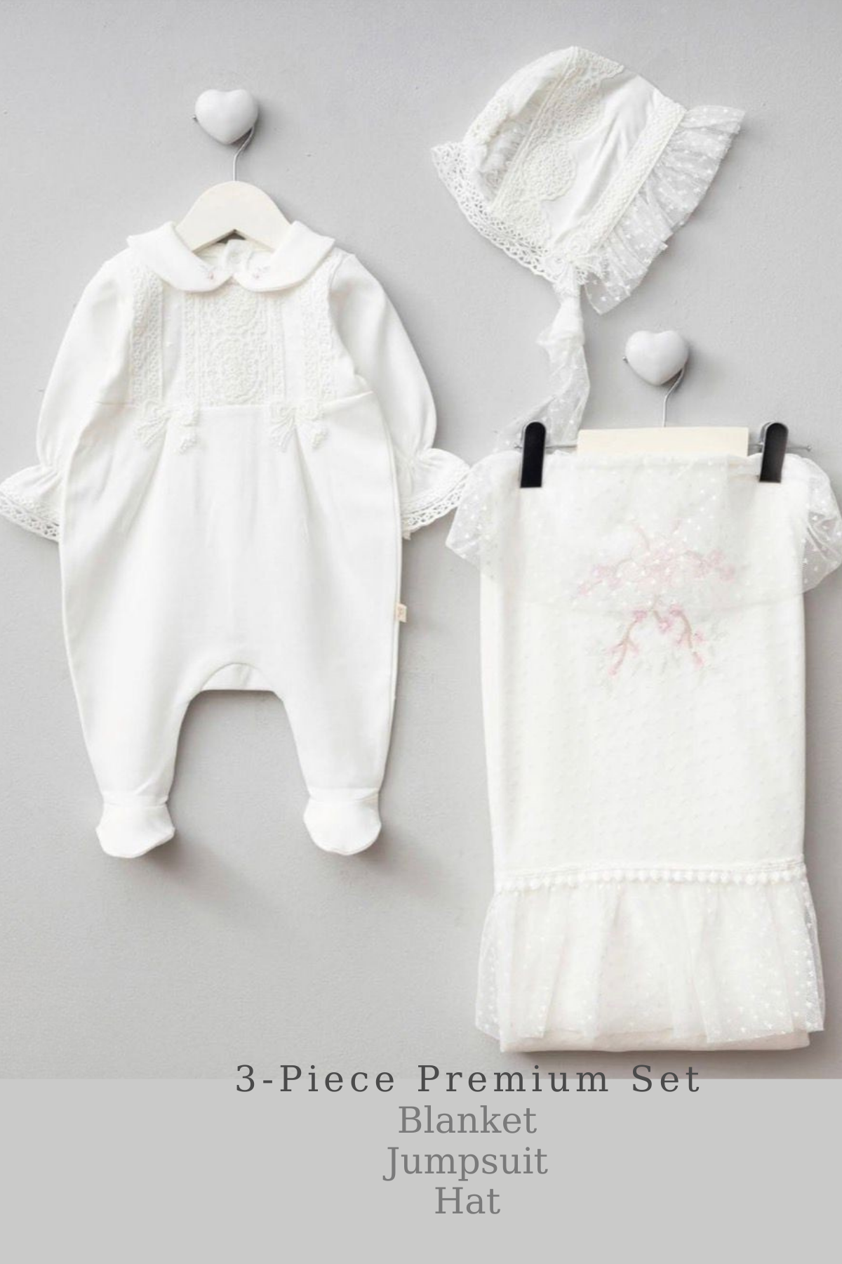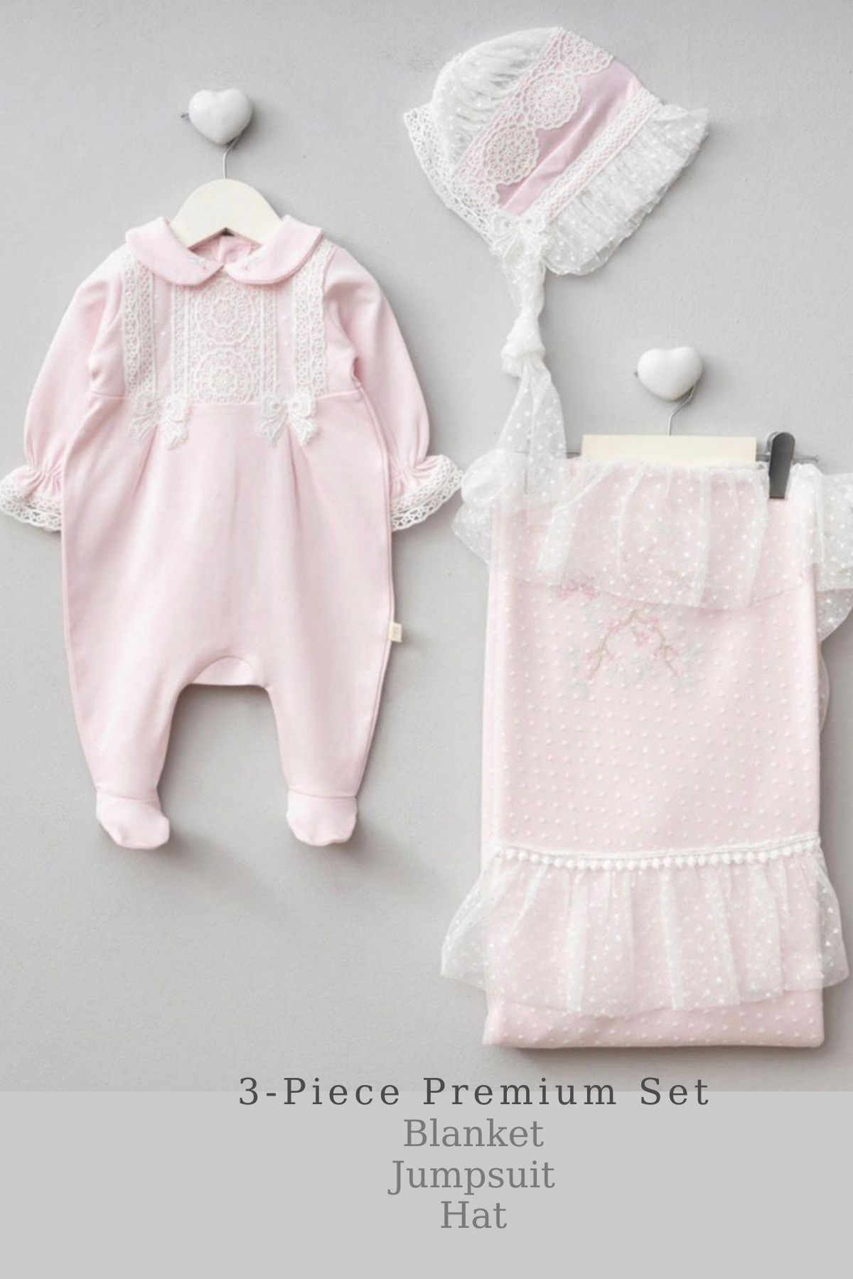 Yeni doğan kız bebekler için özel olarak tasarlanan Luna Lace Hastane Çıkışı Seti, zarif dantel detayları ve yumuşak dokusuyla ilk günlerin en şık eşlikçisidir.; • %100 doğal pamuk kumaş • Hassas yenidoğan cildi için nefes alabilir yapı • Dantel detaylı tulum • fırfırlı battaniye • Uyumlu dantelli şapka • Hastane çıkışı & özel günler için ideal • Şık ve zamansız tasarım Bebeğinizin ilk anlarını konfor, zarafet ve sevgiyle tamamlamak için tasarlandı.;