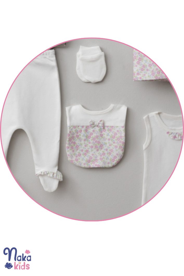Çiçek Bahçesi Bebek Hastane Çıkış Seti, bebeğinizin ilk günlerinde konforunu ve şıklığını ön planda tutar. Yumuşak dokusu ve çiçek desenleriyle bebeğinizi adeta bir çiçek bahçesinin zarafetiyle sarmalar. Hem kullanışlı hem de estetik olan bu set, yenidoğan bebeğinize harika bir başlangıç yapmanızı sağlar!