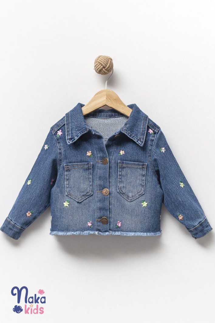 Bu çiçek motifli kot ceket; kızınızın gardırobunun en şık parçası olacak. Hem rahat hem de modaya uygun bu ceketle, kızınız her ortamda göz alıcı bir stil sergileyecek. Dayanıklı malzemesi sayesinde uzun süreli kullanım sunar, böylece en güzel anılarınızda yanınızda olur.