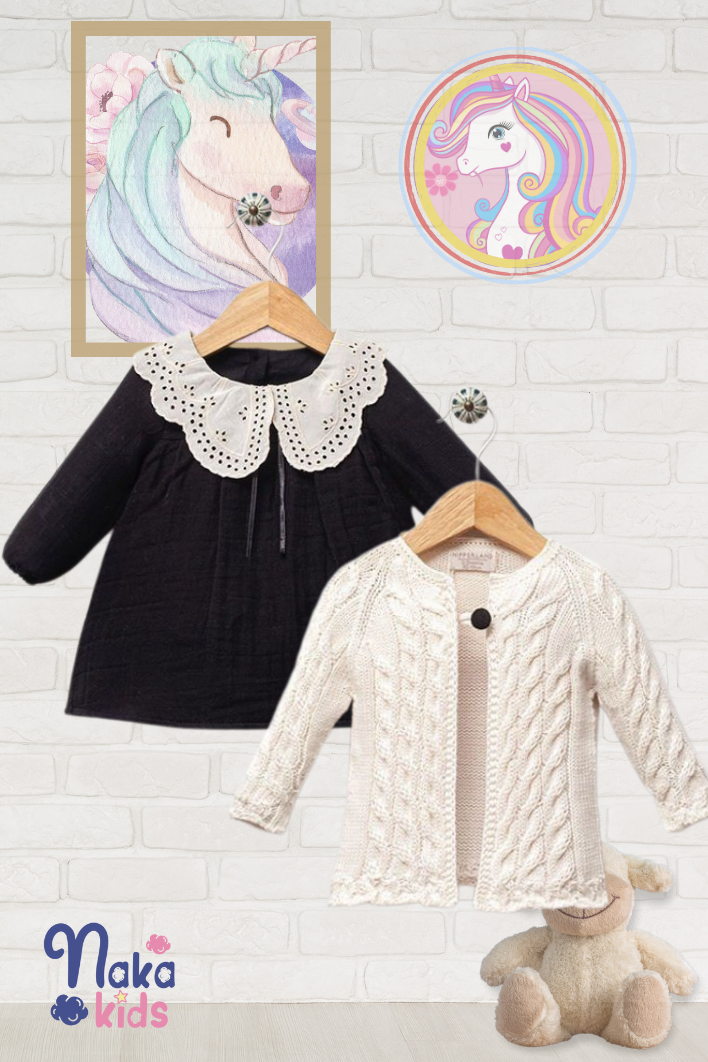 Dantel Zarafeti Müslin Bebek Elbisesi ve Triko Ceket Seti siyah - 9-12 ay