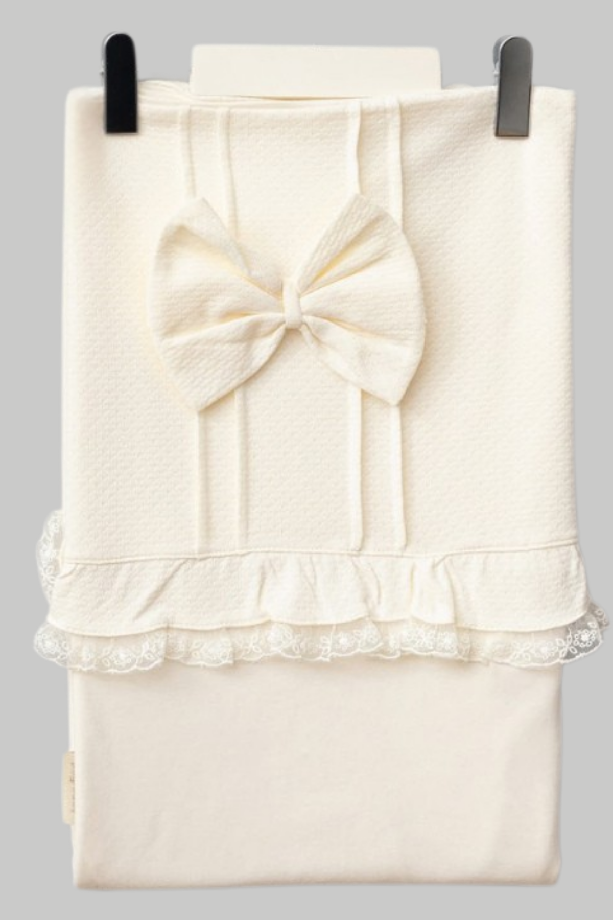 Battaniye: Kenarında ince dantel şeridi, ortasında büyük gösterişli fiyonk