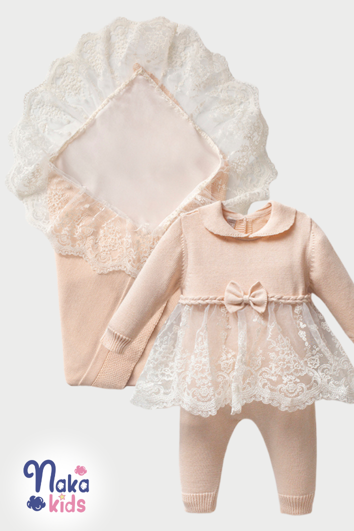 Bebeğinizin ilk günlerinde zarif bir görünüm ve konforu bir araya getiren bu özel set, dantel ve tül detaylarıyla şık, %100 pamuklu kumaşıyla ise yenidoğan cildine nazik bir dokunuş sunar. Nefes alan ve terletmeyen yapısı sayesinde bebeğinizin ilk günlerinden itibaren güvenle kullanılabilir.
