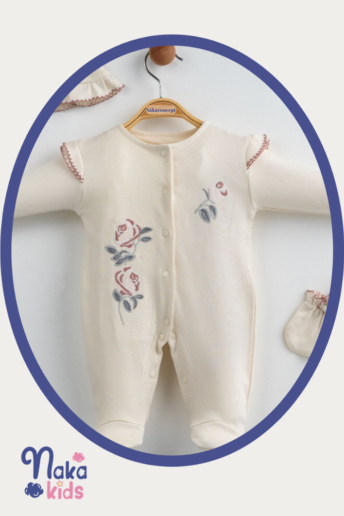 Yumuşak dokusu ve romantik detaylarıyla bebeğinizin ilk anlarına eşsiz bir şıklık katar. Gül nakışlı ve fırfırlı tasarımı, bebeğinizin zarif görünmesini sağlarken, organik kumaşı sayesinde dört mevsim kullanıma uygundur. Hem günlük kullanıma hem de özel günlere uygun olan bu set, bebeğinizin ilk fotoğraflarında en özel anlara eşlik eder...