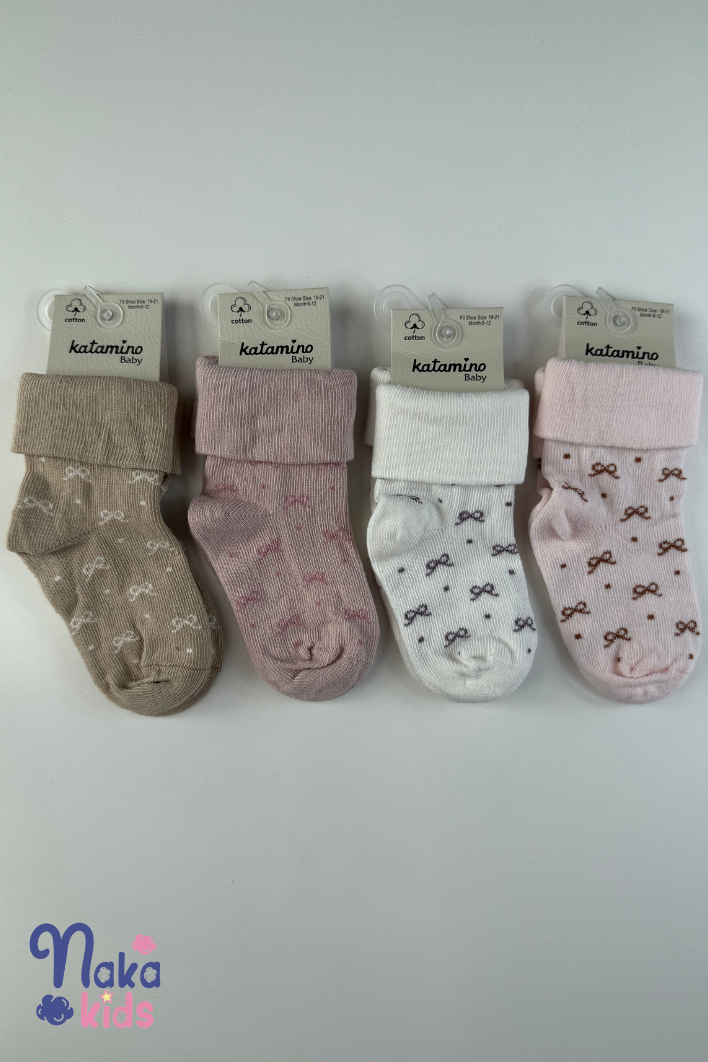 Bebeğinizin her adımı daha tatlı! Bu fiyonk desenli soket bebek çorapları, hem günlük kullanım için rahat hem de sevimli tasarımıyla göz alıcı. Renk renk çeşitleriyle her kombine uyum sağlar.