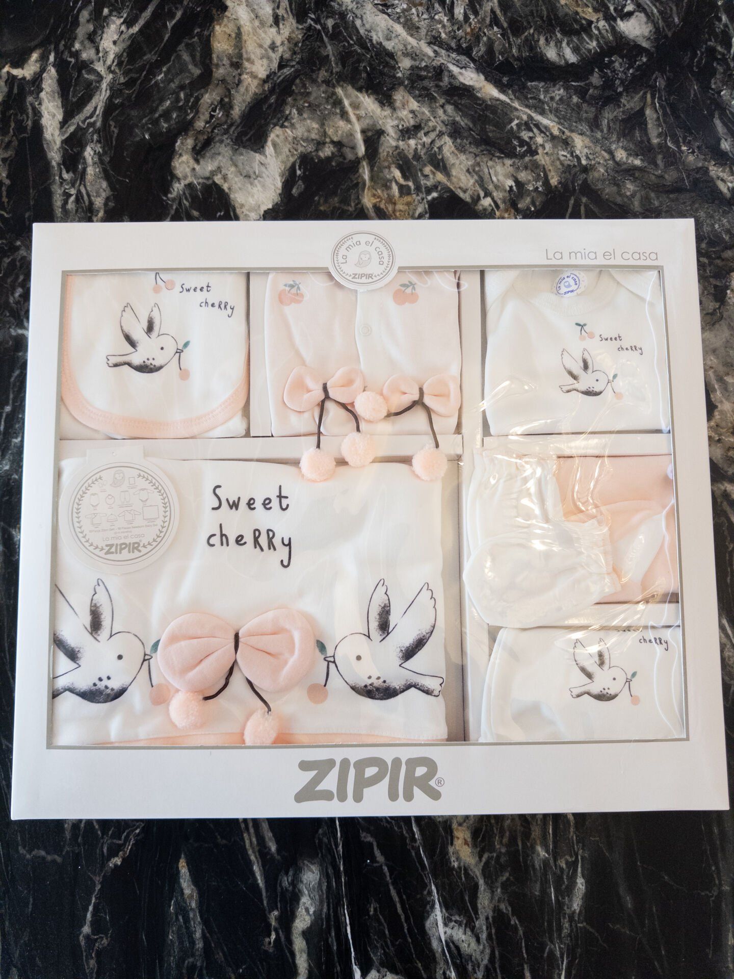 10 parçalık set; Battaniye,zıbın,iç zıbın,uzun kollu body,kısa kollu body,patikli pantolon,önlük,şapka,eldiven,el mendili