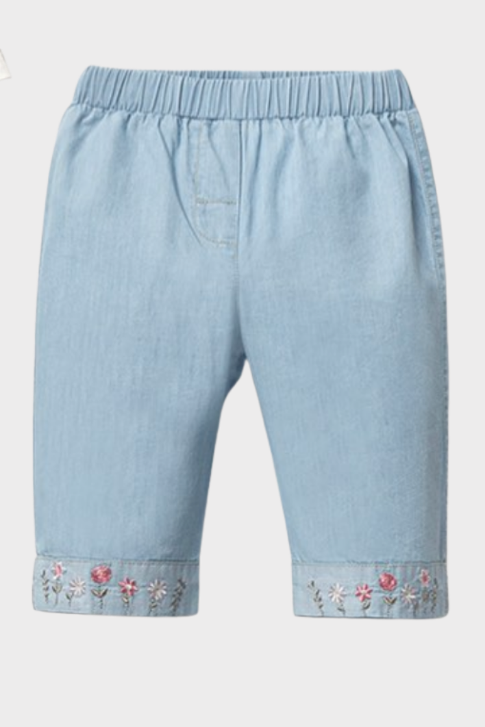 - Paça önlerinde renkli çiçek nakış detayları