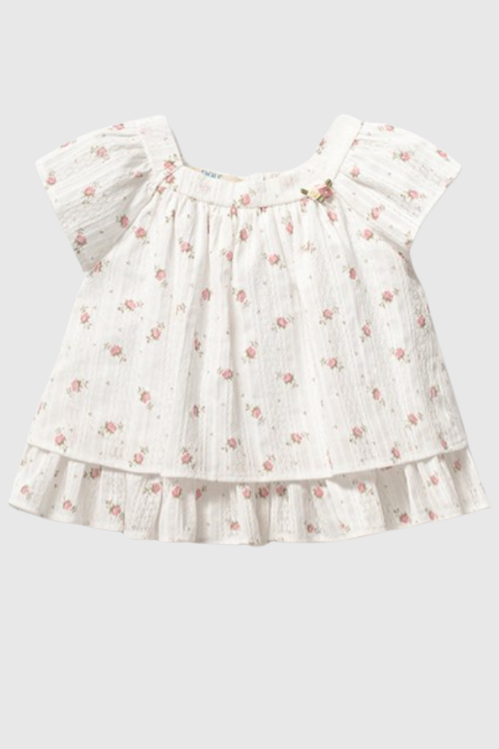Çiçek baskılı katlı üst tasarımı ve ince kot pantolon kombinasyonu ile hem şık hem de kullanışlı bir görünüm sunar. Günlük kullanımda rahat, özel günlerde ise dikkat çekici bir alternatif oluşturur.