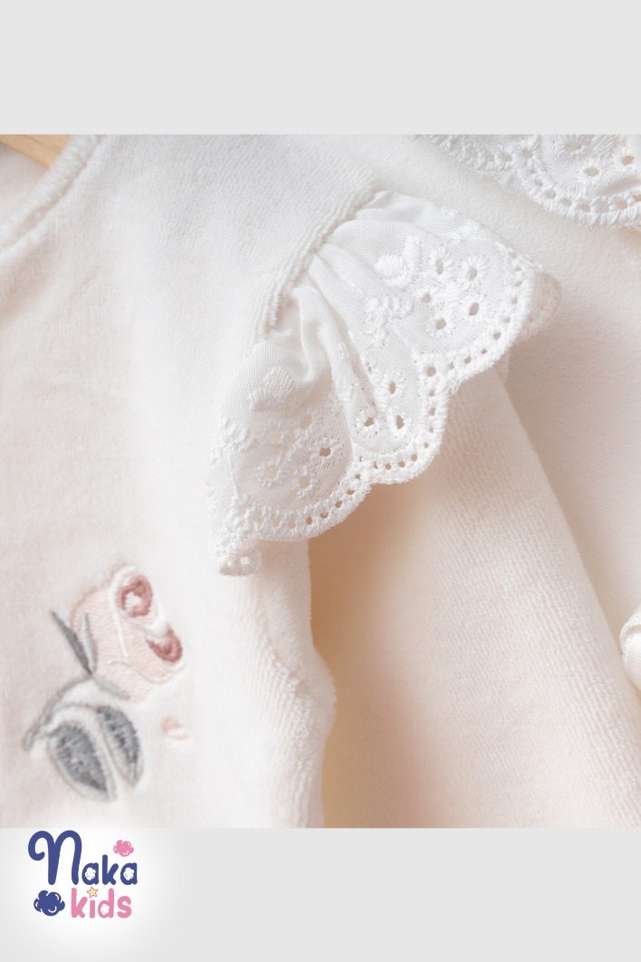 Kadife Fırfırella 5 Parça Kız Bebek Hastane Çıkış Seti- Ekru