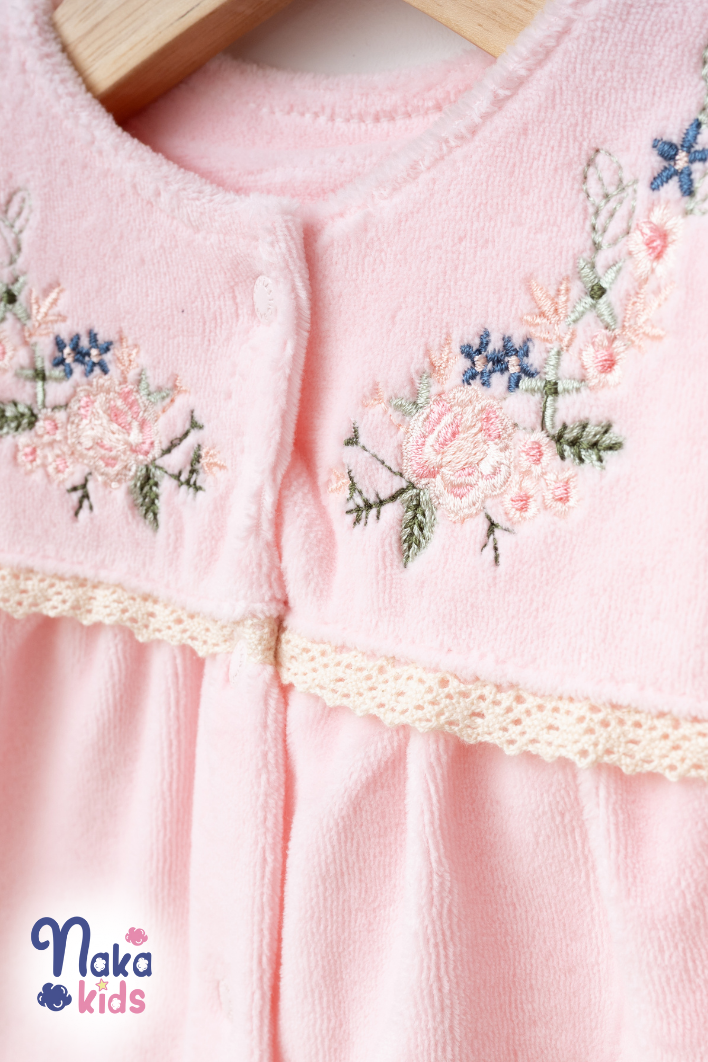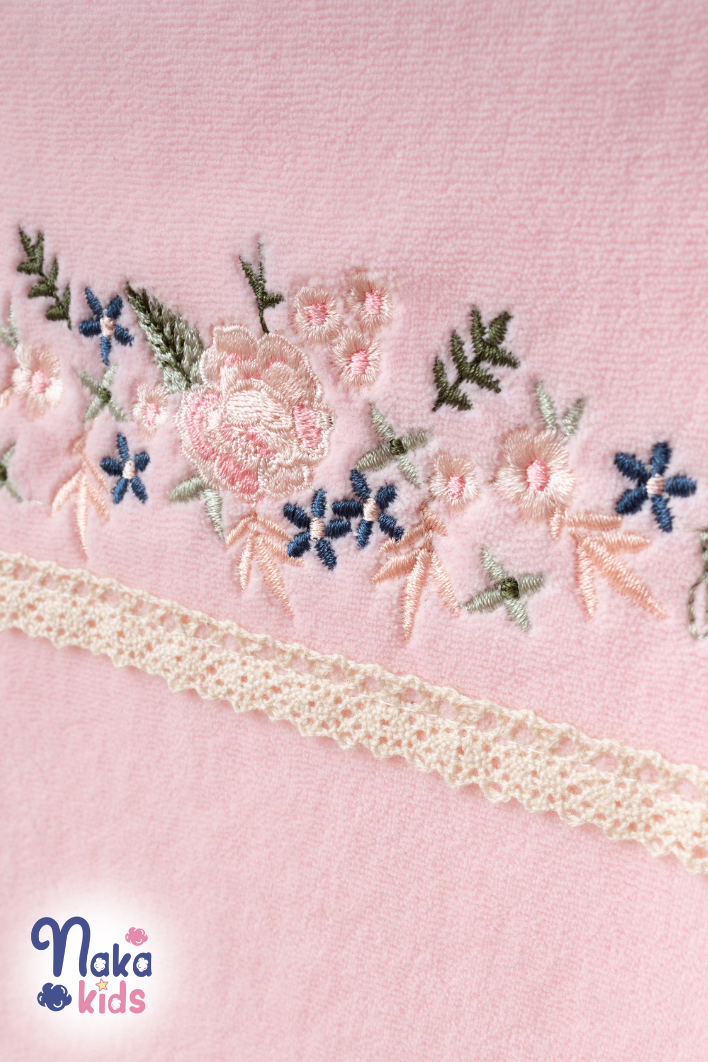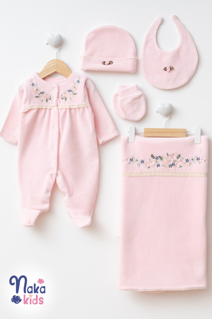 Kadife Sıralıçiçek 5 Parça Kız Bebek Hastane Çıkış Seti- Pembe