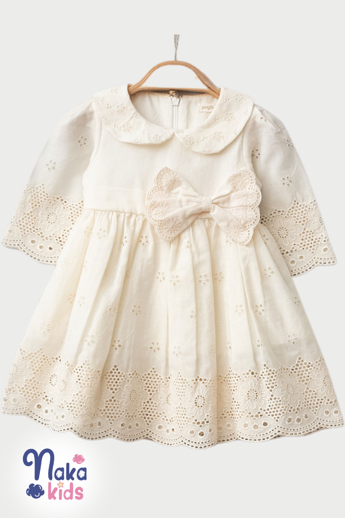 Doğallığın en zarif haliyle buluştuğu bu 4 parçalık bebek elbise takımı, özel günlerde bebeğinizin şıklığını tamamlamak için özenle hazırlandı. Krem tonlarının yumuşaklığı, fisto işlemeleri ve dantel detaylarıyla buluşarak hem sade hem etkileyici bir görünüm sunuyor.