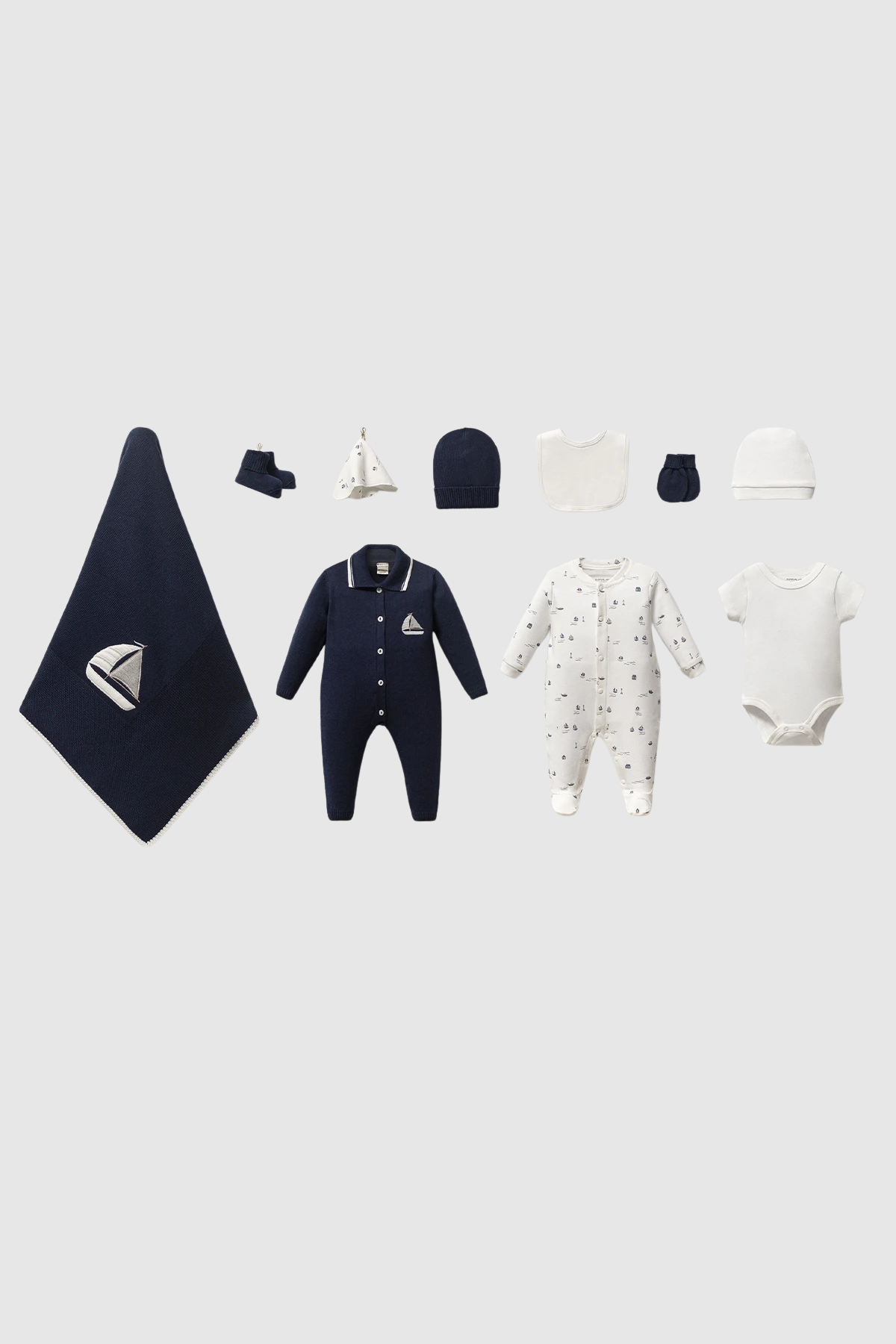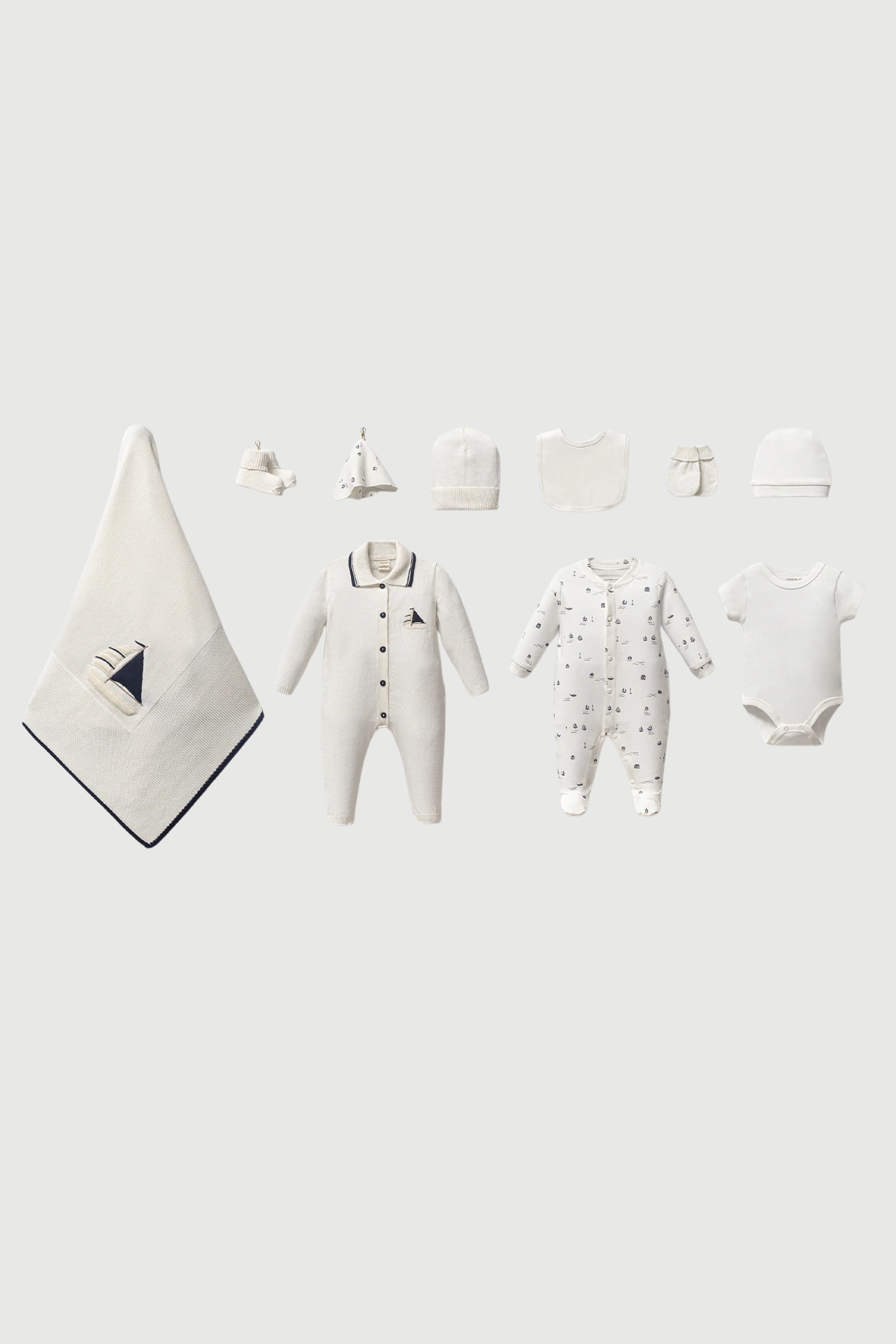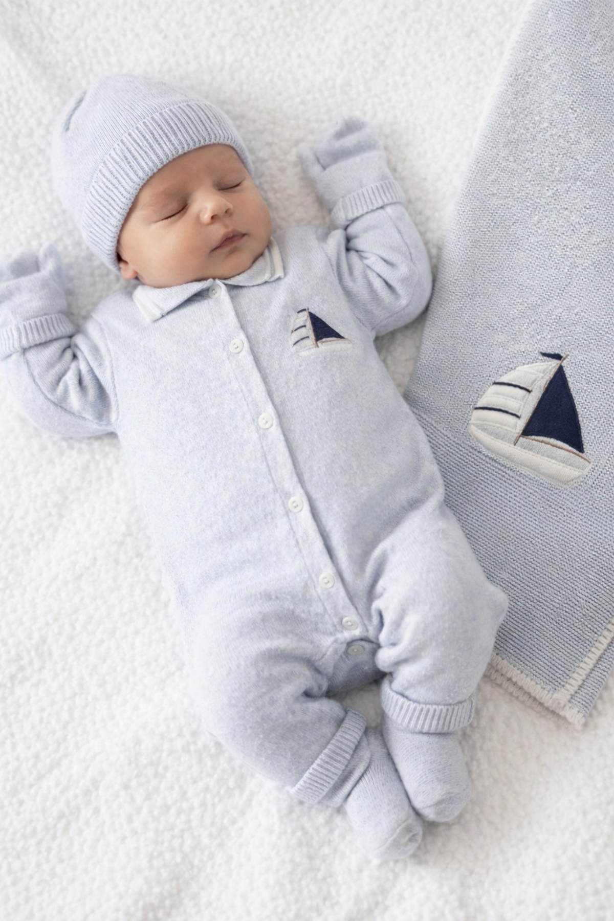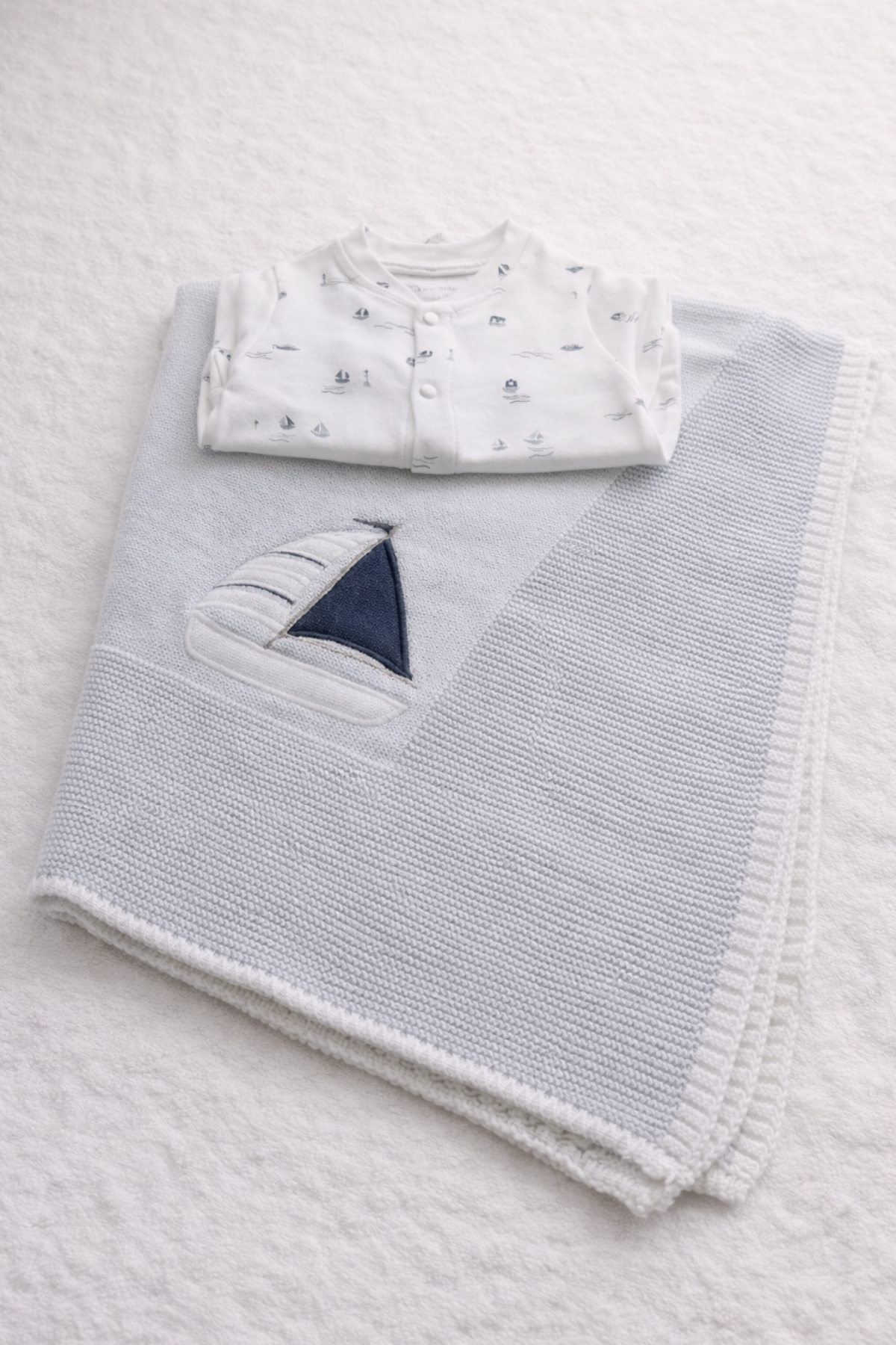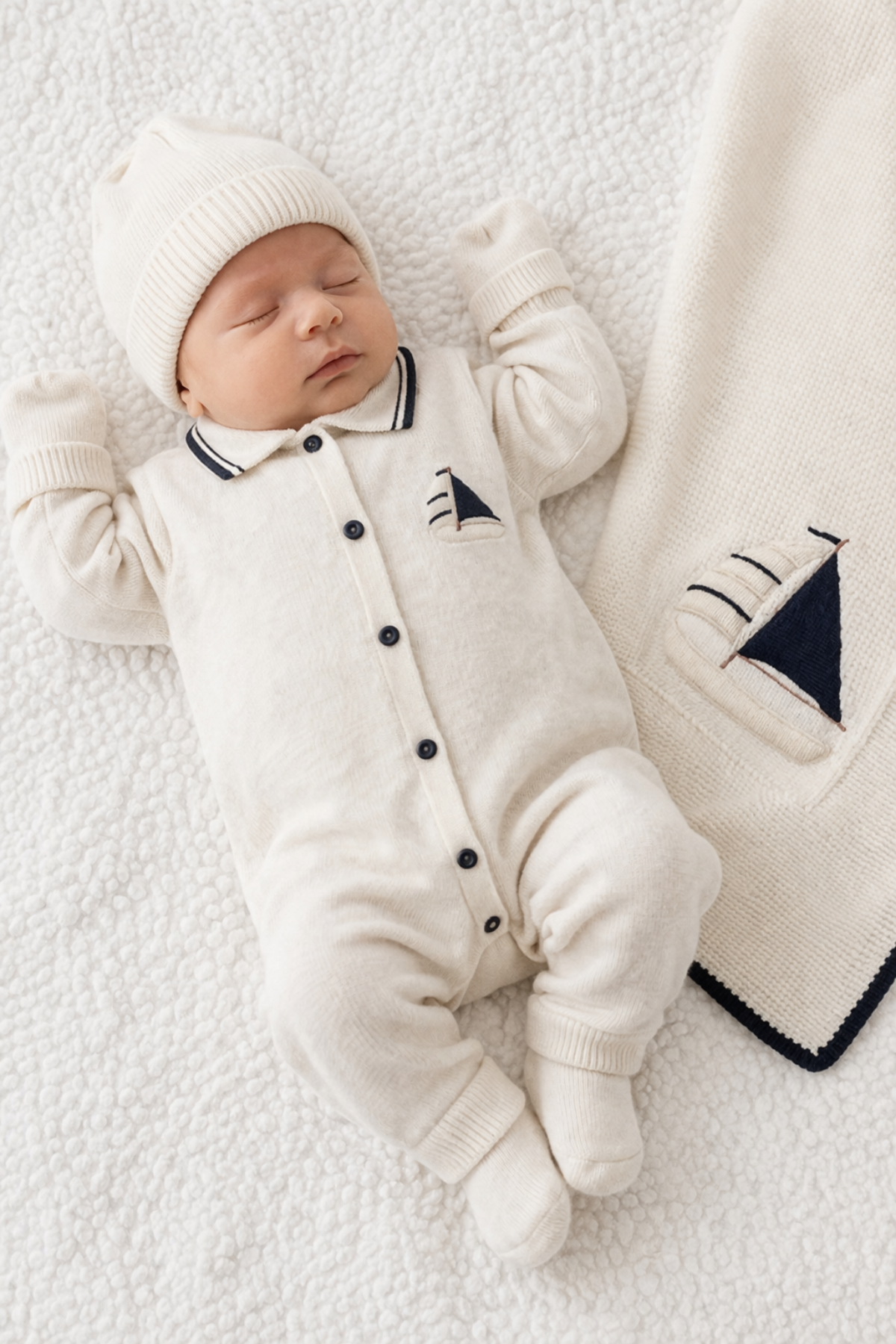 • Battaniye ve tulum üzerinde yelkenli nakış detayı bulunmaktadır