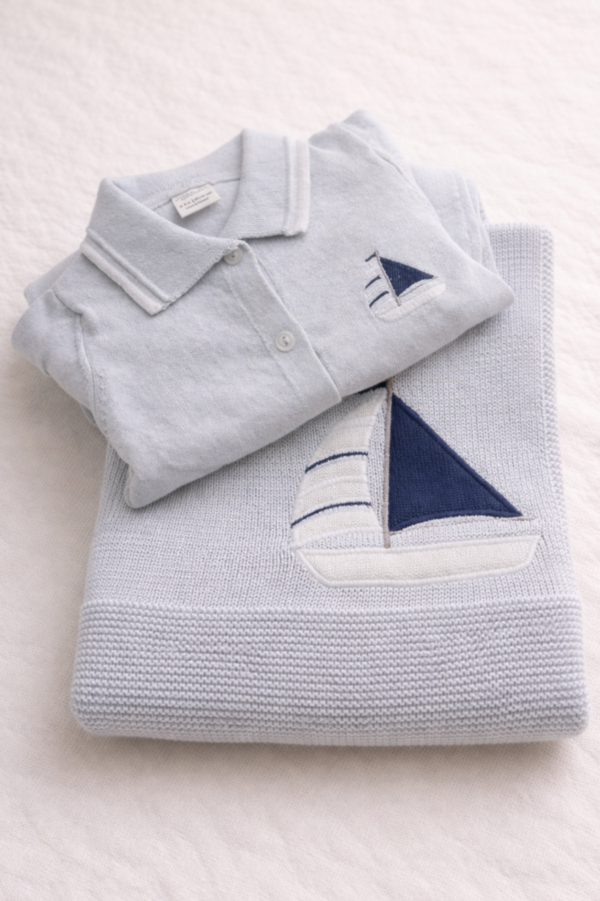 • Triko battaniye (90x90 cm) – yelkenli nakış detaylı