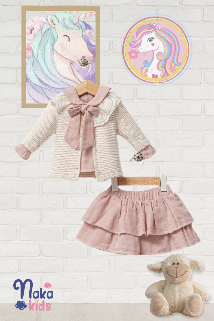 Bu ürünümüz, minik prenseslerin zarafetini ön plana çıkarmak için özenle tasarlanmıştır. Setimiz, bebeklerin hassas cildi düşünülerek %100 doğal pamuktan üretilmiş bir triko hırka ve şık bir fırfırlı etekten oluşmaktadır. Hırkamız, yumuşacık dokusu ile bebeğinizin gün boyu rahat etmesini sağlarken, fırfırlı eteğiyle de stil sahibi bir görünüm kazandırır. İki parçadan oluşan bu set, günlük kullanım için idealdir ve özel günlerde de kızınızı en şık şekilde temsil eder.