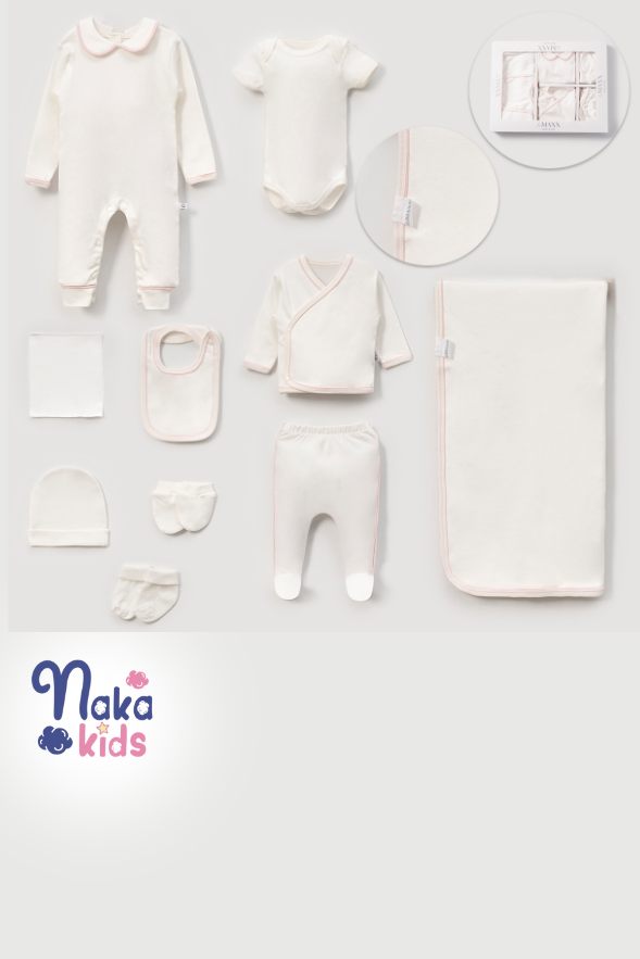 Set içeriği: Uzun kollu tulum, kısa kollu body, çapraz yaka üst, alt pantolon, battaniye, önlük, eldiven (1 çift), çorap (1 çift), şapka ve mendil.