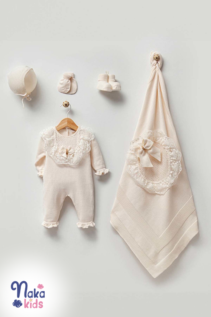Organik Dantelli 5 li Hastane Çıkış Seti