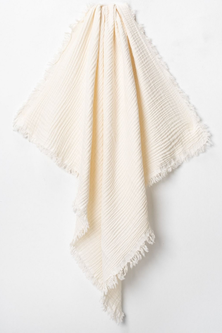 • Düz krem renk müslin battaniye – hafif, nefes alabilen ve çok amaçlı kullanım