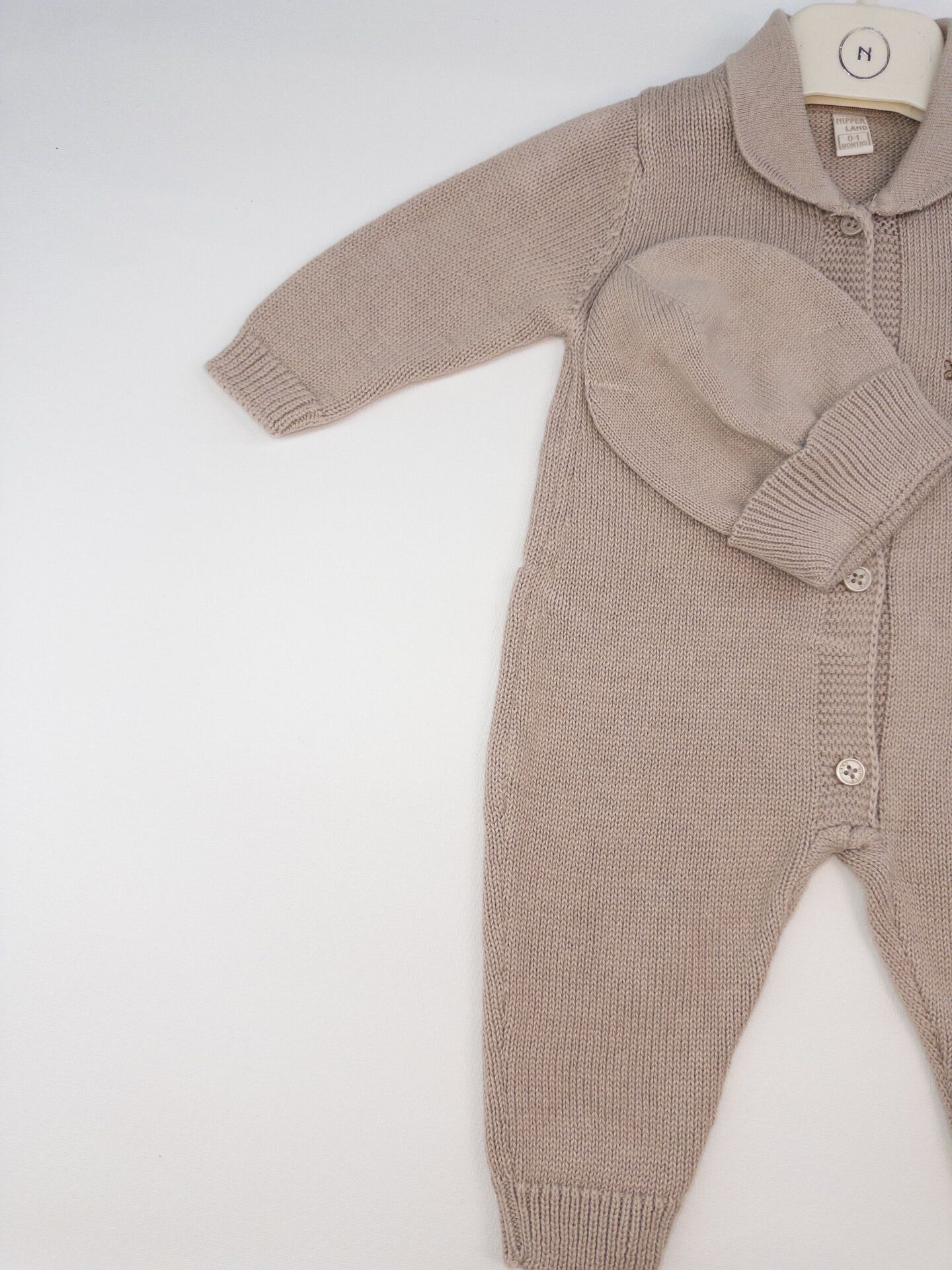 1 Adet önden düğmeli bebe yaka düz renk örgü tulum