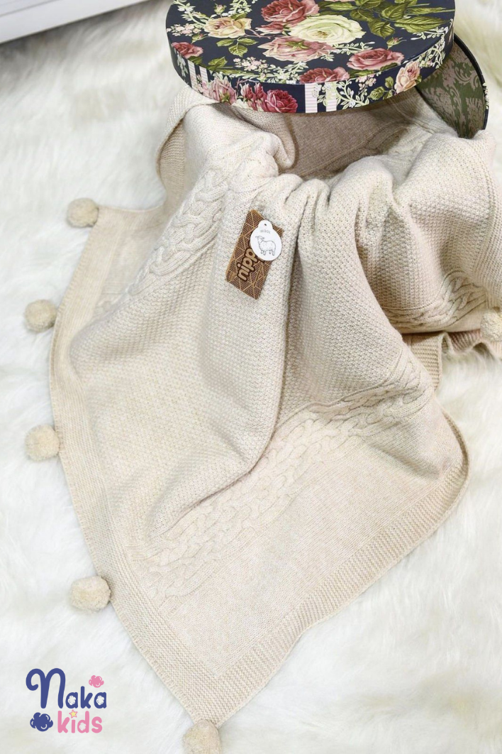 Saç örgülü Ponponlu Battaniye ilk günden itibaren yumuşacık dokusuyla bebeğinize ve size konfor sağlar.