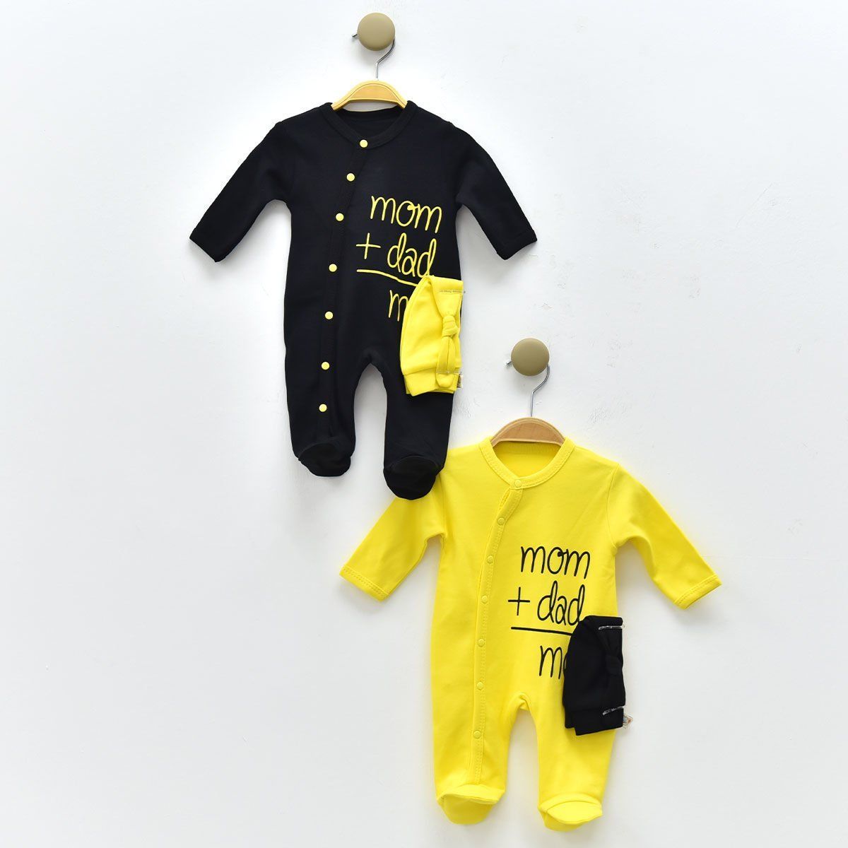 ''Precious Equation'' İkili Bebek Tulum ve Şapka Seti 1-3 ay - sarı-siyah