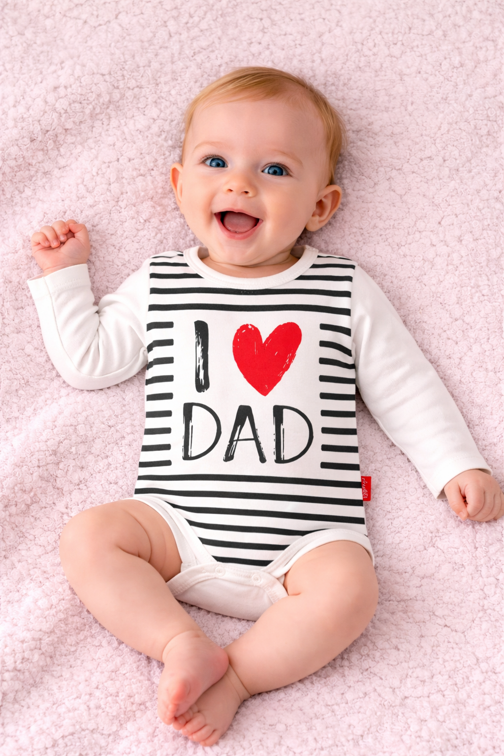 Baba Sevgisi Uzun Kollu Bebek Zıbın ürünü teslim adlım, baskı kalitesi çok iyi, I love Dad bebek kıyafeti arayan herkese tavsiye ederim.