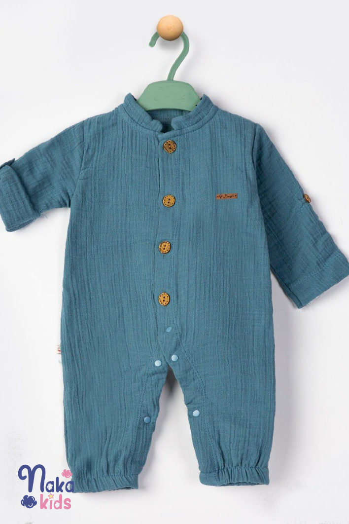 Bu hafif ve sağlıklı çocuk tulumu, miniklerin konforunu ve şıklığını ön planda tutan anne ve babalar için mükemmel bir seçimdir. Yüzde yüz saf müslin pamuktan üretilmiş bu tulum, bebeklerin cildi için mükemmel bir seçimdir; nefes alabilir yapısı ile sıcak yaz günlerinde bile serin tutar.