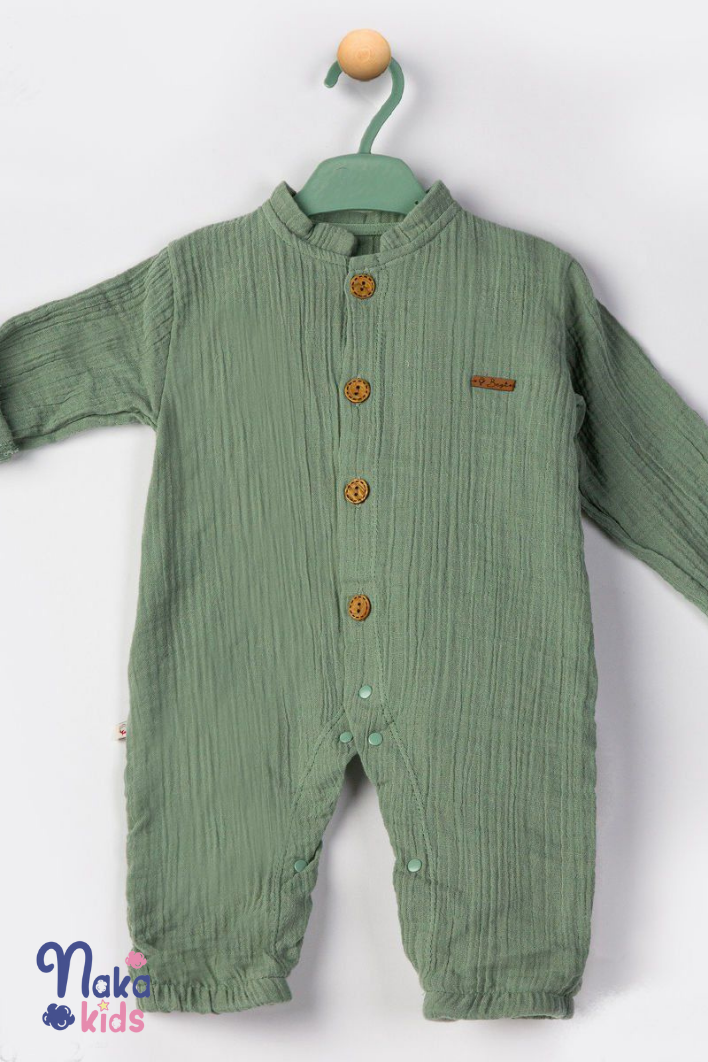 Bu hafif ve sağlıklı çocuk tulumu, miniklerin konforunu ve şıklığını ön planda tutan anne ve babalar için mükemmel bir seçimdir. Yüzde yüz saf müslin pamuktan üretilmiş bu tulum, bebeklerin cildi için mükemmel bir seçimdir; nefes alabilir yapısı ile sıcak yaz günlerinde bile serin tutar.